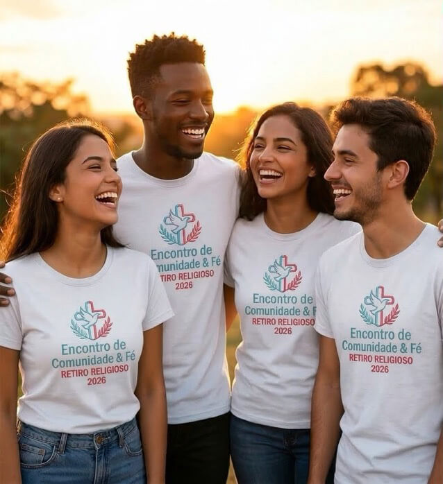 A participação em eventos religiosos é um momento de forte conexão com a comunidade. Ter uma camiseta personalizada contribui ativamente para o bom andamento de qualquer retiro ou congresso.